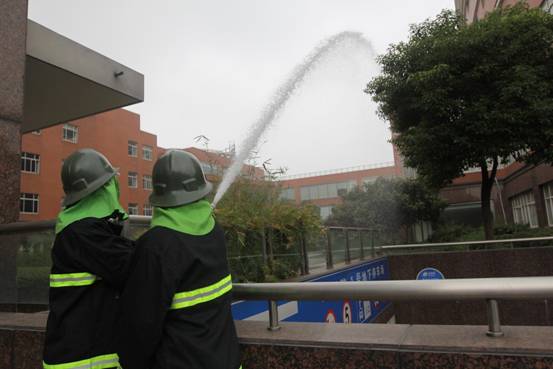 圖為:婦保院保安服務(wù)中隊的隊員正在進行出水演練