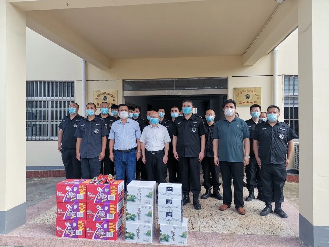 副總經(jīng)理王錦春來到人防中心駐金融中心、有軌電車、淮陰卷煙廠、江蘇鑫源薄片有限公司、淮安市護(hù)理職業(yè)技術(shù)學(xué)院5個(gè)執(zhí)勤點(diǎn)以及犬防大隊(duì)、銀盾供應(yīng)鏈物流公司,慰問了在高溫下堅(jiān)守一線的執(zhí)勤人員,為一線人員送去了降溫防暑物品,給他們送去了總公司的關(guān)愛。