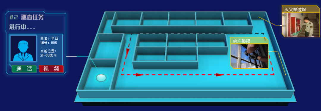 針對(duì)隱患地點(diǎn)對(duì)保安隊(duì)伍設(shè)定合理的巡邏路線,從而形成了一個(gè)“電子定點(diǎn)、以點(diǎn)串線,以線帶面、點(diǎn)線面結(jié)合”的巡邏防控網(wǎng)絡(luò)。巡更時(shí)發(fā)現(xiàn)異常情況,保安員可將現(xiàn)場(chǎng)以音視頻+文字的形式通過手機(jī)客戶端上報(bào)給相關(guān)部門,嚴(yán)重時(shí)可以一鍵向指揮中心求援。