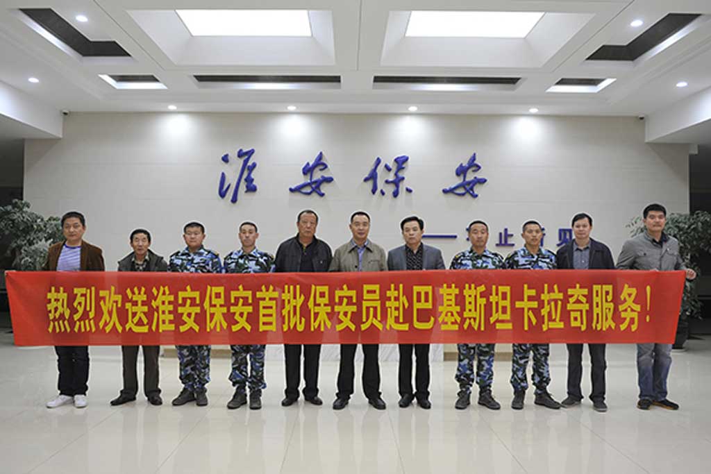 2016年4月16日,江蘇省淮安市保安服務(wù)總公司精心選派的張偉、武曉杰、劉軍、王殿善4名保安員由上海機(jī)場(chǎng)飛至巴基斯坦卡拉奇執(zhí)行海外安保服務(wù)。這是淮安保安公司自2015年11月向巴基斯坦卡拉奇派駐6名工程類安全員之后又一次派駐海外安保服務(wù)。